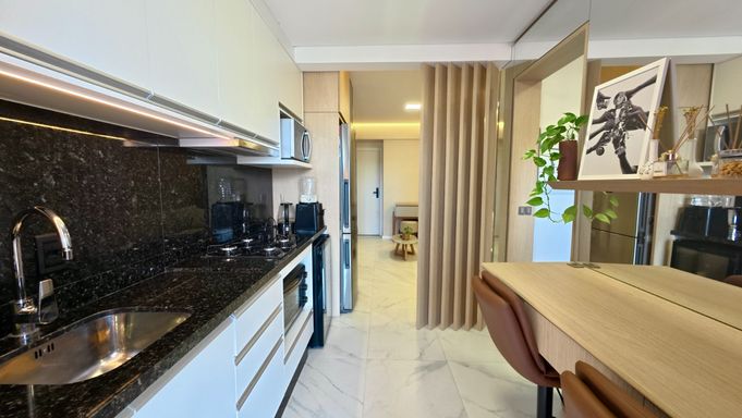 Imóvel contém 2 quartos, sendo 1 suíte, living integrado, cozinha, lavanderia, banheiro social, sacada e 2 vagas de garagem.